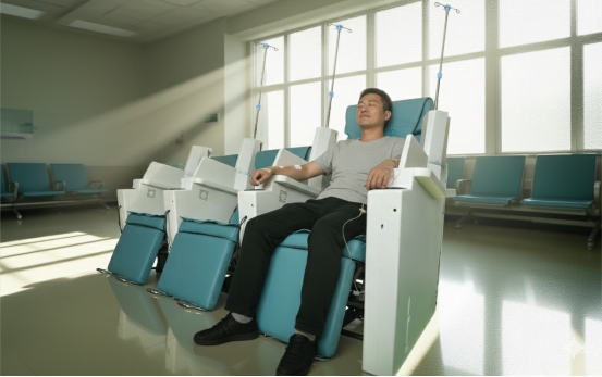 走进医院的输液区,你看到的往往是这样一幅景象:患者们蜷缩在硬邦邦的金属座椅上,面无表情地盯着输液瓶,时间仿佛在点滴声中凝固。一个小时、两个小时、三个小时... 长时间的固定坐姿让腰背酸痛,身体麻木,而冰冷的椅面、嘈杂的环境更让本就虚弱的患者雪上加霜。
