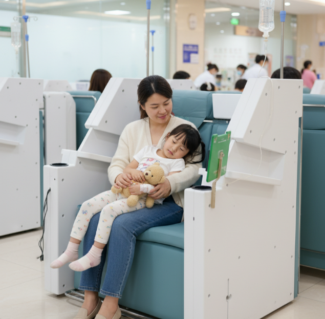 硬座椅、嘈杂环境、空气异味……多重不适叠加,让输液从"治疗"变成"煎熬"。大部分患者因输液环境差而产生过抵触情绪,特别是儿童输液,甚至影响治疗依从性。