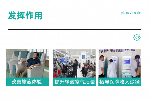 多数医院输液区排布密集、人流量大,输液患者多为免疫力低下人群,座位间也很少有隔离措施,空调系统及有限的净化设备难以进近距离实时净化空气。所以病患近距离输液时任然存在交叉感染的可能。